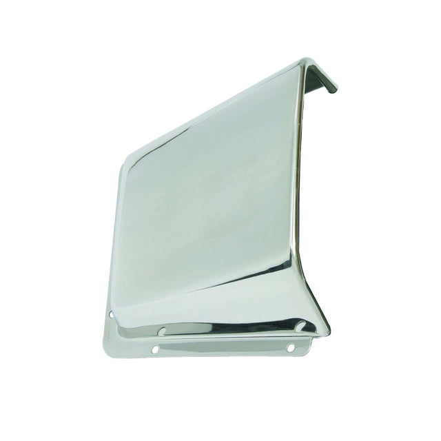 Polierter, rostfreier Stahl. Umbördelte Kante gegen Verletzungsgefahr. LxBxH: 130 x 142 x 48 mm. Befestigungsbohrung Ø 3,9 mm für Zylinderkopfschrauben.