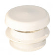 Deckslüfter/Pilzlüfter mit weißer Kunststoffkappe, der von innen verschließbar ist. Ausschnittdurchmesser: 101 mm, Decksflansch 146 mm, Höhe 30 mm.