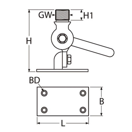 Shakespeare Kipphalter Edelstahl 4-Wege Kipphalterung, Antennenhalterung, Schnelllöse-Mechanismus
