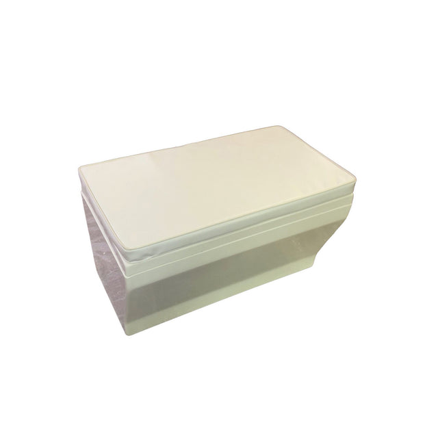 Backskiste mit Polster, GFK-Verstaubox, weißes Kunstleder, 72x40x38 cm