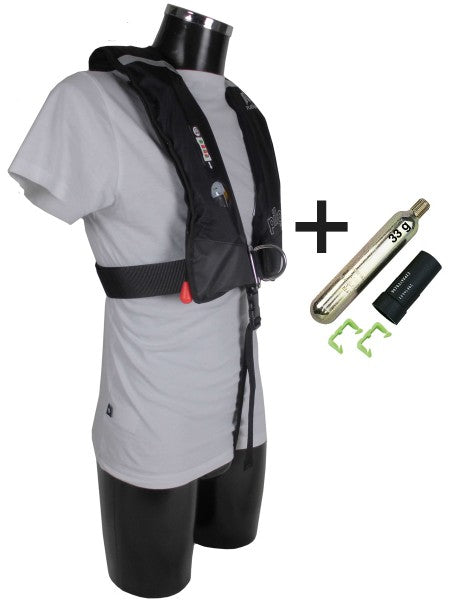 Rettungsweste Vollautomatisch 165 N Schwarz, Schwimmweste, Pro Sensor inkl. Lifebelt + Füllkit