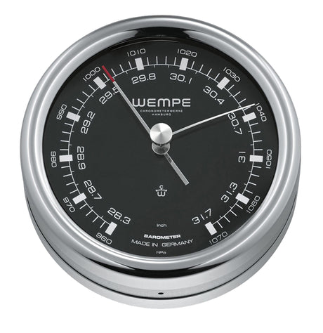 WEMPE Barometer polierter Edelstahl Quarzwerk, Wetterinstrument, leuchtendes Zifferblatt