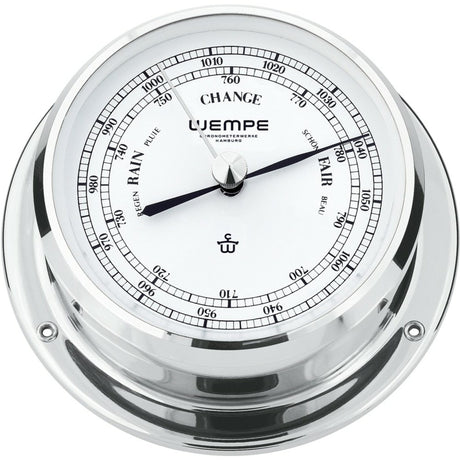 WEMPE Barometer Bullaugen-Schiffsuhr, Quarz-Batteriewerk, massives verchromtes Messinggehäuse