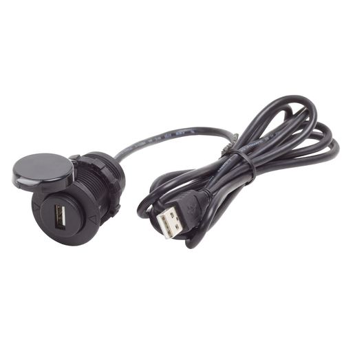 Steuern Sie eine Stereoanlage oder ein anderes Gerät aus der Ferne von einem Telefon oder Tablet im Cockpit aus. Der USB 2.0-Daten-/Spannungsanschluss lässt sich einfach mit einem vorverdrahteten Verbindungskabel am Armaturenbrett montieren, das bequem direkt an den USB-Anschluss der Stereoanlage angeschlossen wird. Die Staubschutzkappe mit Halteband hält Staub und Spritzwasser fern.