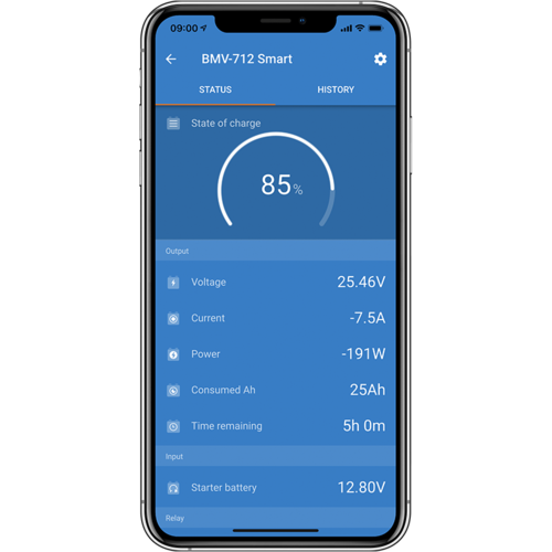 Mit integriertem Bluetooth ist der BMV Smart bereit für die Ära des Internet der Dinge (IoT). Da Bluetooth in den meisten anderen Victron Energy Produkten implementiert ist, vereinfacht die drahtlose Kommunikation zwischen den Produkten die Systeminstallation und verbessert die Leistung.