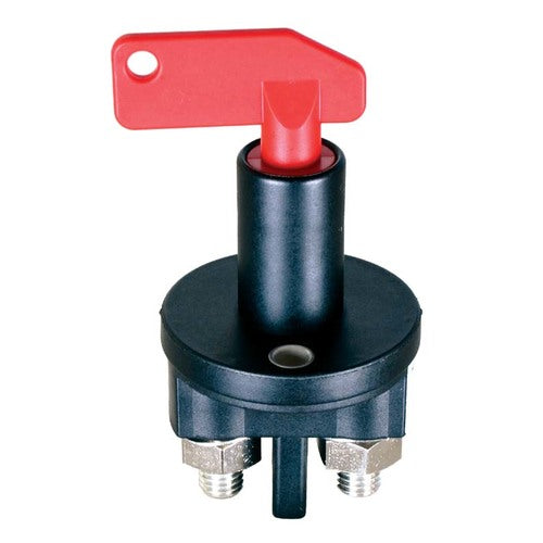 Batteriehauptschalter für hohe Strombelastung und dauerhafte Beanspruchung. Hochwertige professionelle Ausführung basierend auf den Erfahrungen aus der Relaistechnik in wasserdichter Ausführung. Schalthebel in Aus-Stellung abziehbar.