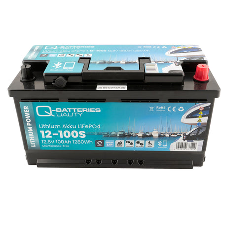 Q-Batteries Lithium Akku 100Ah, LiFePO4 Batterie, zyklenfest und leicht