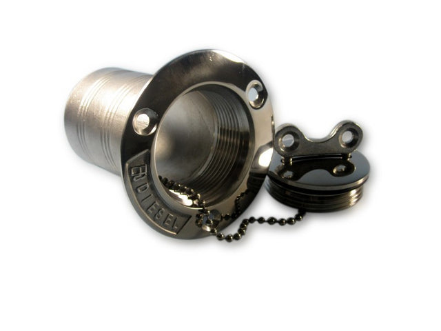 Tankeinfüllstutzen Diesel Edelstahl 50 mm, Tankstutzen, mit Verschlussstopfen Kette