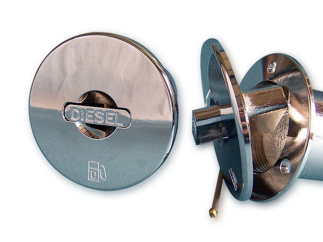 Tankeinfüllstutzen Diesel Messing verchromt, Einfüllstutzen, verdeckte Befestigungsschrauben