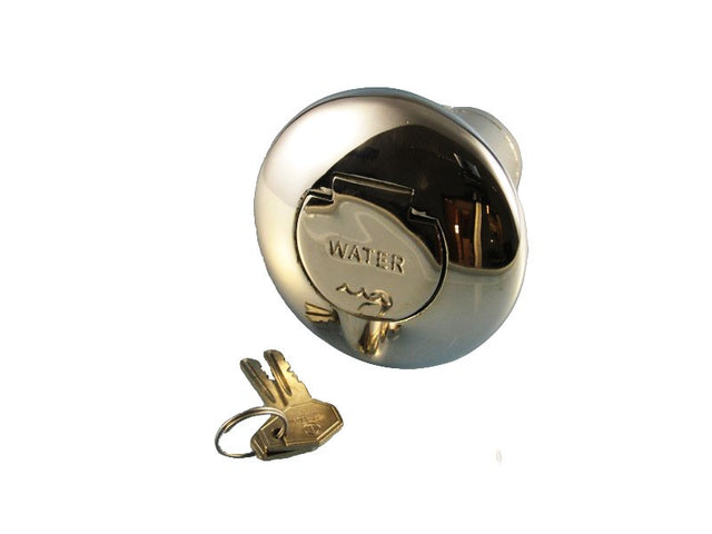 Tankeinfüllstutzen Wasser Edelstahl AISI 316 hochglanzpoliert, Einfüllstutzen, mit Kettensicherung und 2 Schlüsseln für 38 mm Schlauchdurchmesser
