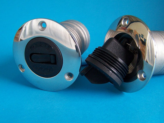 Tankstutzen Einfüllstutzen Edelstahl 50 mm, Verschlussstopfen Kette, 80 mm Außendurchmesser