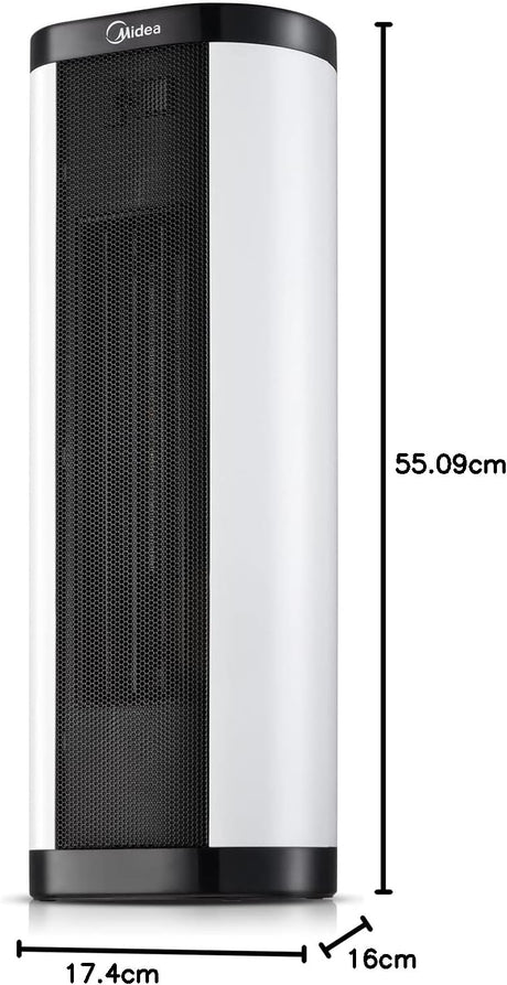 SaleAusverkauftMidea Turmheizlüfter 1200/2000W schwarz/weiß, Heizgebläse mit Eco-Modus, Oszillation & Fernbedienung Verkaufspreis €24,99 Normaler Preis €59,99Grundpreis /Nicht verfügbar