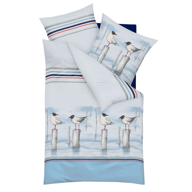 kaeppel Satin-Bettwäsche Mako-Satin maritim Möwen-Design, Bettwäsche-Set, temperaturausgleichend 135 x 200 cm