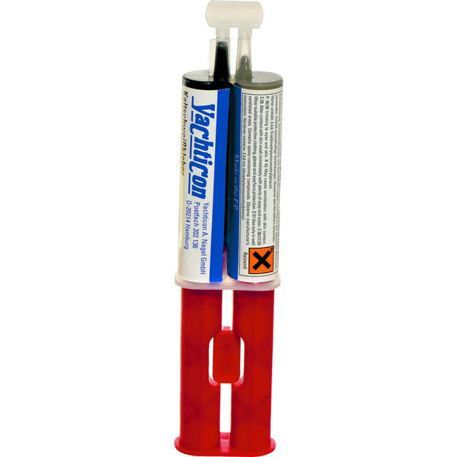 Mit dem Yachticon Kaltschweiß-Kleber kann man im Handumdrehen jede Oberfläche reparieren, kleben und füllen. Speziell für Metall, Holz und Hartkunststoff geeignet. Schnellhärtend und stahlgefüllt, extrem hohe Klebkraft, temperaturbeständig von -60°C bis 145°C. Nach Aushärtung mechanisch bearbeitbar, widerstandsfähig gegen Chemikalien und Wasser. Inhalt: 24 ml