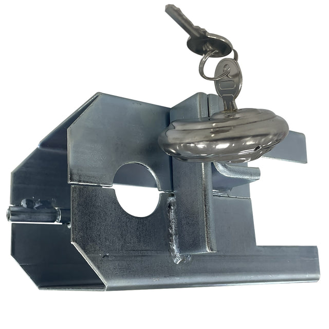 Ein preiswerter, aber dennoch stabiler und sicherer Diebstahlschutz für ihren Anhänger - Die klappbare Kastensicherung für Anhänger, Trailer oder Wohnwagen. Sichern Sie ihren Bootstrailer mit dieser Kastensicherung effektiv gegen Diebstahl. Das Diskusschloss sichert ihren Trailer vor dem unerlaubten Entwenden.