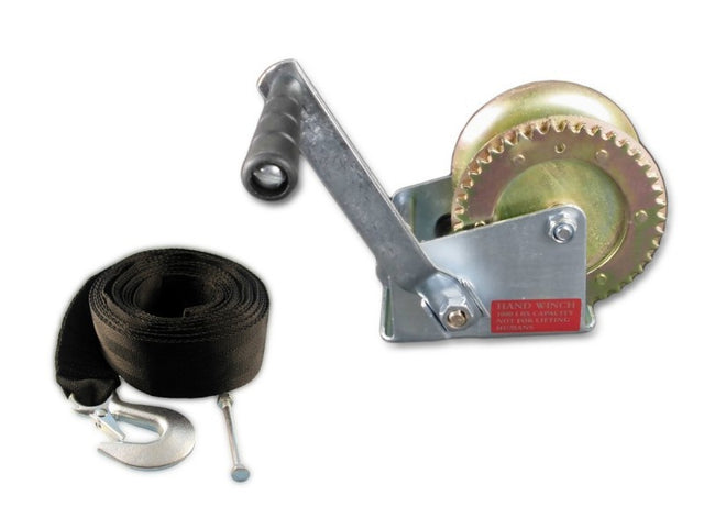 Preisgünstiges Komplettset für Trailer mit Winde und Gurt.