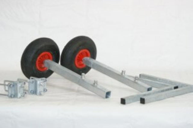 Zentriereinrichtung zum einfachen Aufslippen. Verhindert seitliches Wegtreiben des Bootes. Die Stangen werden seitlich an den Trailer montiert.