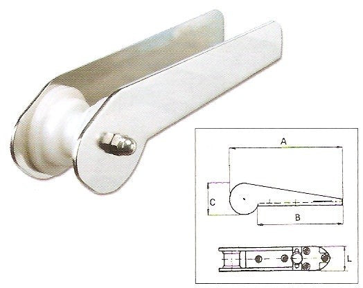 Edelstahl Bugrolle hochglanzpoliert, Rolle für Boote, Nylonrolle 242 mm lang
