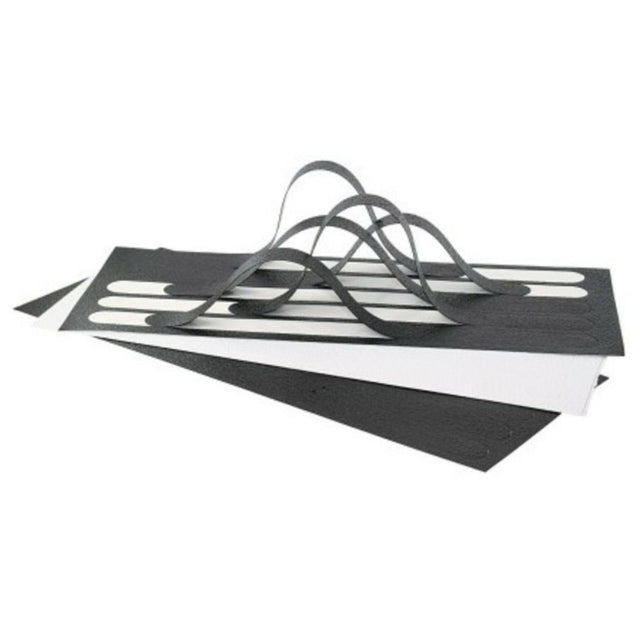 Vorgestanzte Streifen mit gerundeten Ecken. Eine Verpackungseinheit besteht aus zwei Bögen á 5 Streifen.