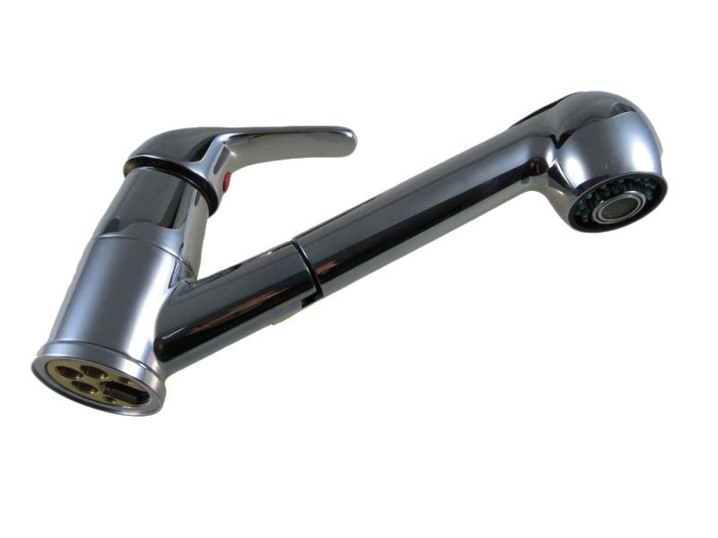 Formschöne kombinierte Lösung aus Wasserhahn und Einbaudusche. Die Temperatur lässt sich bequem mittels der Einhand-Mischbatterie steuern, am Wasserhahn ist ein felxibler Schlauch, mit dem der Duschkopf herauszunehmen ist.