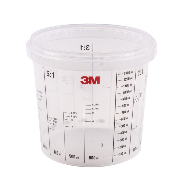 Fester Mehrweg-Mischbecher mit Skala. Ausgehärtetes Epoxidharz lässt sich aus diesen Mischbechern problemlos lösen.