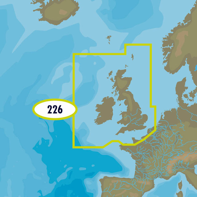 C-MAP 4D MAX+ EW D226 UK, Ireland and the Channel bildet die Nordsee bzw. den Atlantik rundum Groß Brittanien und Irland ab.
