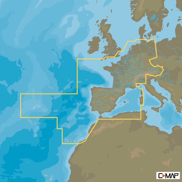 C-MAP Elektronische Seekarte Hochauflösende Bathymetrie West- & Zentraleuropa, Navigationskarte, Dynamische Rasterkarten für Segler & Angler