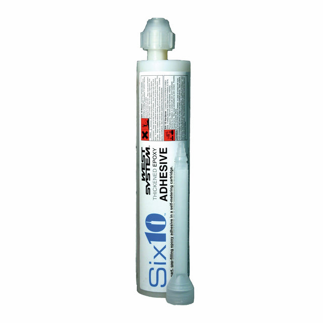 Six10 von West System ist ein angedicktes 2-Komponenten-Epoxidharz, das in einer Kartusche „steckt“ und dadurch so einfach wie ein 1-Komponenten-Produkt verarbeitet werden kann. Six10 passt in eine handelsübliche Kartuschenpresse. Es ist vielseitig anwendbar: zum Abdichten, Kleben, Laminieren und gewährleistet ein sauberes Arbeiten. Die Verarbeitungszeit bei 21° C beträgt 45 Minuten und eine Aushärtung ist nach cirka 5-6 Stunden gewährleistet.