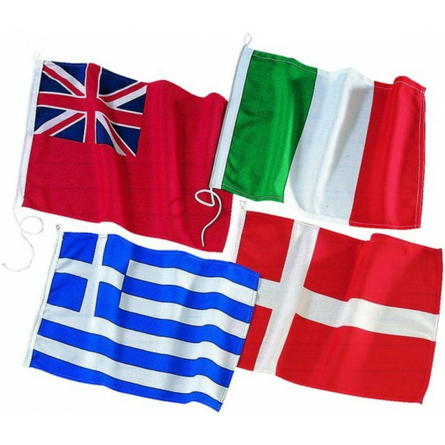Wenn Sie mit Ihrem Boot in ein anderes Land segeln, sollten Sie stets die Flagge des Gastlandes unter der Steuerbordsaling setzen. Das ist seemännischer Brauch und höflich gegenüber dem Gastland. Die Gastlandflagge für Italien ist wie alle unsere anderen Länderflaggen auch aus farbechtem, 100%-igem Spun-Polyester, beständig gegen UV-Strahlen und dadurch länger haltbar. Für eine schnelle und einfache Befestigung sind unsere Flaggen übrigens mit Öse und Bändchen ausgestattet. Die Gastlandflagge Italien ist in 2 verschiedenen Größen erhältlich.