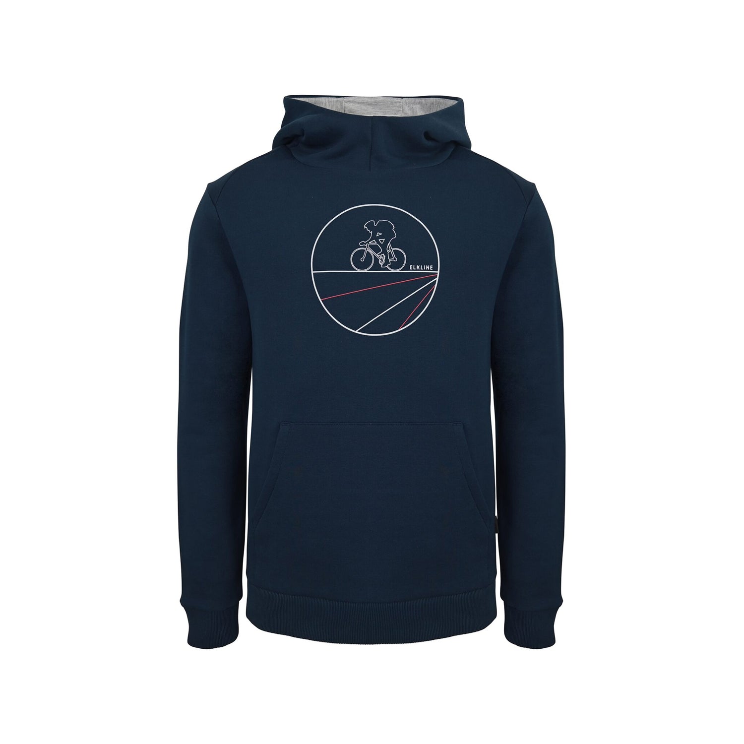 Ein besonderes Highlight ist neben der großen Kängurutasche besonders die darin versteckte Reißverschlusstasche. In dieser können wertvolle Gegenstände sicher untergebracht werden. Der etwas höhere Kragen schützt Ihren Hals bei kälteren Temperaturen oder leichten Brisen. Dank des sprortlichen Print-Motivs auf der Brust ist dieser Herren Hoodie FIETS von Elkline ein echter Hingucker.