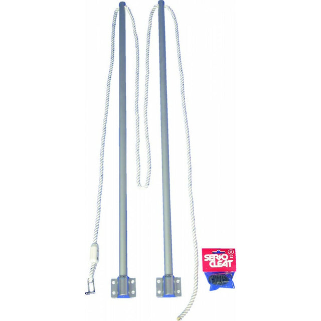 Handlauf für Gangway bestehend aus 2 Aluminium-Relingstützen (Länge: 70 cm/ Ø 25 mm) mit Tauwerk-Handlauf.