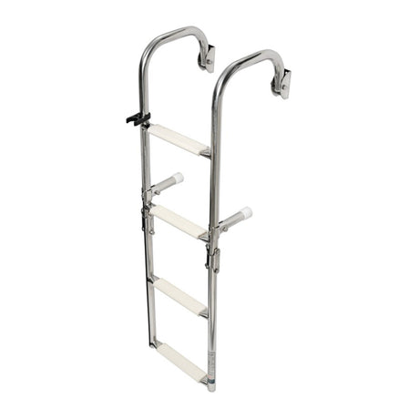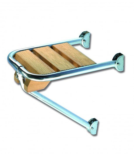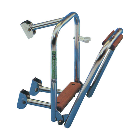 PRASOLUX Badeleiter 3-stufig aus Edelstahl und Teak, Bootsleiter, ideal für kleinere Sportboote