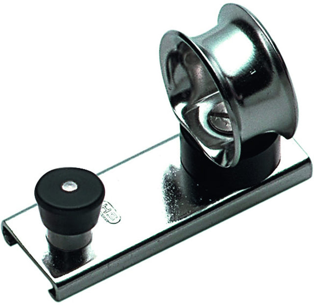 Rutscher mit drehbarem Auge und Rasterstift, passend zur Schiene 20 x 3 mm, Material rostfreier Stahl.