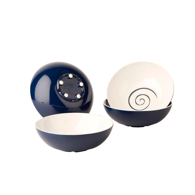 Müslischalen-Set aus dem Hause Gimex bestehend aus 4 Müslischalen in weiß mit einer blauen Verzierung. Material: Melamin.