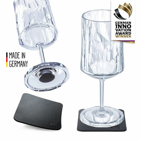 silwy Kunststoffgläser-Set Magnet-Weingläser, bruchsicher & kratzfest, mit Gel-Untersetzer