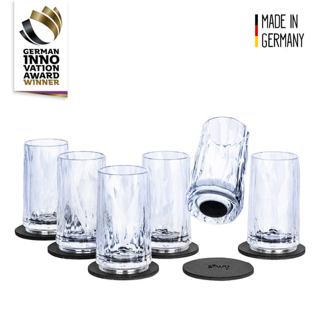silwy Longdrink Kunststoffgläser 2er Set, bruchsicher kratzfest, Magnet und Gel-Untersetzer