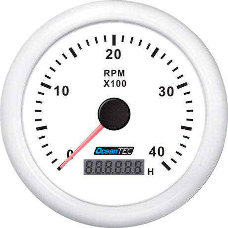 OceanTEC Drehzahlmesser 4000 RPM 96 mm, Betriebsstundenzähler, 12V/24V Anschluss - schwarz oder weiß