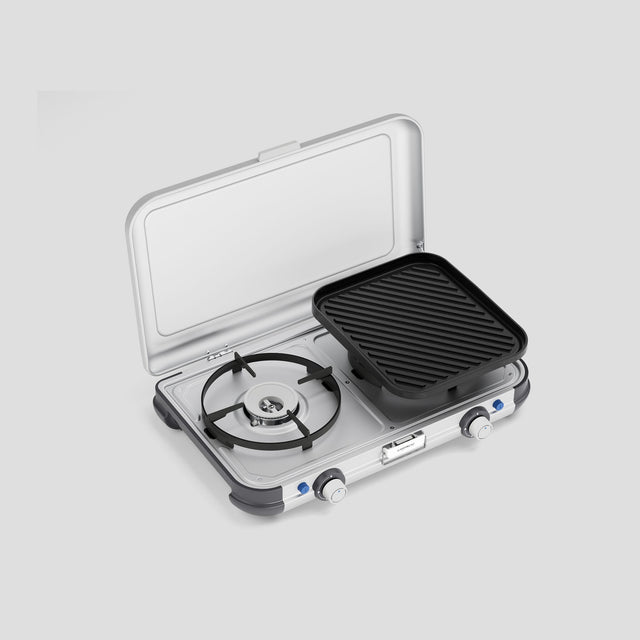 CampingGaz Camping-Kocher 2-Flammen mit Grill, Gaskocher, inklusive Transporttasche ist auf Lager und wird versandt, sobald es wieder verfügbar ist