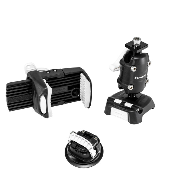 Rokk Mini Handyhalterung Smartphonehalter, verstellbares Haltesystem, kompakte Befestigungslösung für Smartphones bis 1,2 kg - (Optional mit Anschraubfuß) - mit Saugfuß ist auf Lager und wird versandt, sobald es wieder verfügbar ist