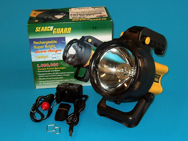 Suchscheinwerfer mit Akku Wetterfest ABS Kunststoff 600m Reichweite, Flutlichter, Inkl. 12V Akku & Ladegerät Gelb