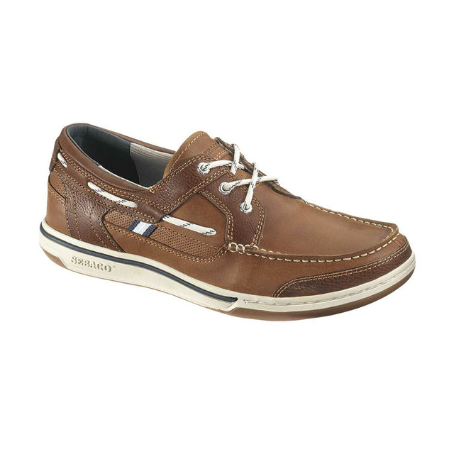 SEBAGO Herren-Bootsschuh Triton Three Eyelets, nautischer Stil, hochwertiges Leder, rutschfeste Gummisohle - 41 - 50,5 (Optional mit Zubehör) dunkelblau, braun-weiß, navy, cognac-braun, braun, grau - braun-weiß / 46 ist auf Lager und wird versandt, sobald es wieder verfügbar ist