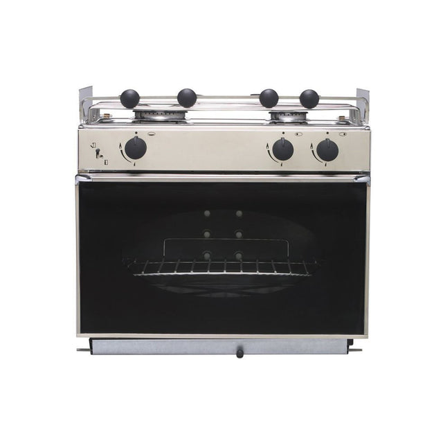 Eno Gaskocher Edelstahl 2-flammig mit Backofen, Campingkocher, glänzend