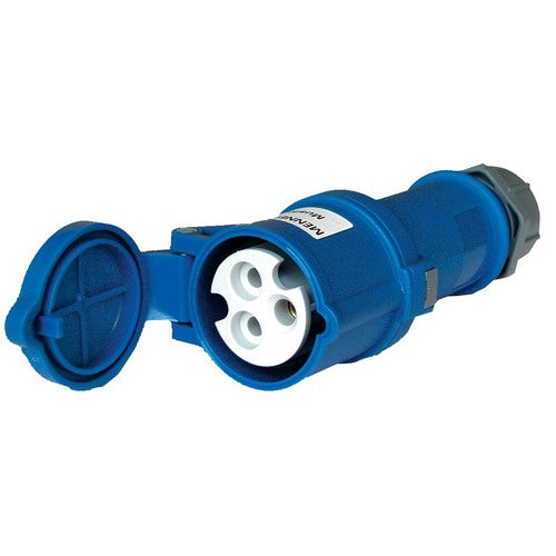 CEE-Kupplungdose mit Kabelknickschutz, 2+PE, 230V/50Hz - 16A. Spritzwassergeschützte Ausführung, Schutzart IP X4.