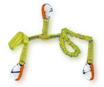 Mistic II Sorgleine elastisch asymetrisch mit 3 Karabinerhaken, elastische Sicherheitsleine, Bruchfestigkeit 2000 kg