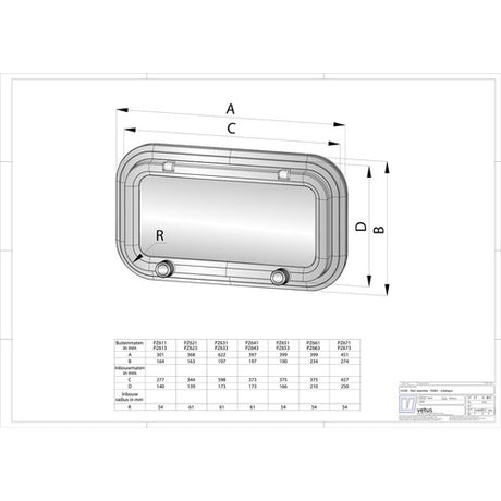 Vetus Decksluke anodisiertes Aluminium 21mm, Notluke, für Bereich A II wasserdicht