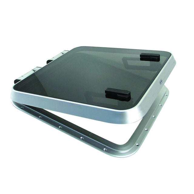 Die Flushline-Luken von GEBO sind extrem flach konstruiert und haben eine Höhe von nur 24 mm über Deck. Selbsthemmende Scharniere stützen die Luke in jeder Lüftungsstellung bis zu einem Winkel von 180. Je nach Größe haben die begehbaren Acrylglasscheiben in Rauchgrau eine Glasstärke von 8 bzw. 10 mm. Das Zubehör wie Inneneinbaurahmen (Aluminium), Fliegengitter und Luken-Kombinations-Rollo kann separat zu jedem GEBO-Typ bestellt werden. Eckradius: 42 mm. Erhältlich sind die GEBO Flushline-Luken in 5 verschiedenen Größen.