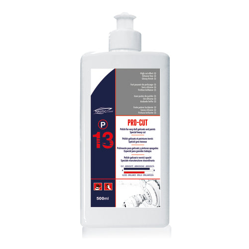 Auf Basis von POLYGRAD™-Mikro-Schleifkristallen entwickelte Politur der neusten Generation. Für grobe Arbeiten auf matten Oberflächen entwickelt, eignet sich P13 PRO-CUT für das Polieren von mehligen, porösen Gelcoats und stark matten Lackierungen.