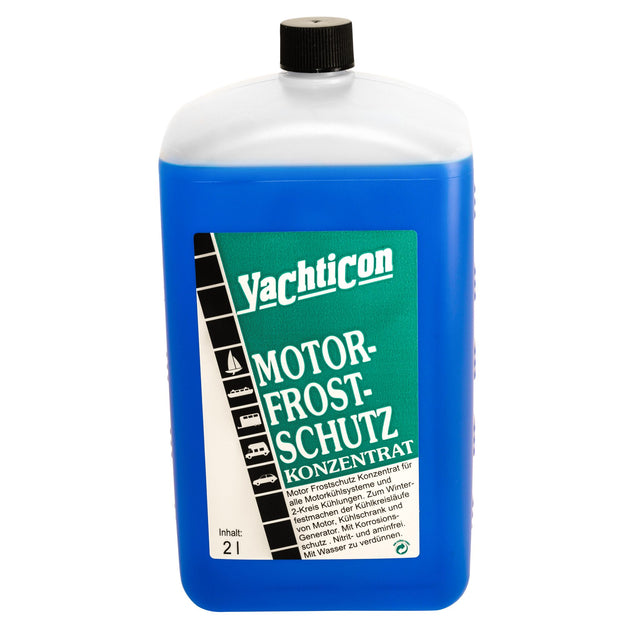 Das Yachticon Motor Frostschutz-Konzentrat ist ein wirkungsvoller Frostschutz für alle Motorkühlsysteme sowie 2-Kreis-Kühlungen. Der Motor-Frostschutz von Yachticon macht Kühlkreisläufe, Kühlschränke und Generatoren winterfest. Weiterhin schützt dieser Frostschutz durch seine Korrosionsinhibitoren vor Rost und Korrosion. Das Konzentrat ist Nitrit- und aminfrei. Unverdünnt bei bis zu -59° C einsetzbar. Mit Wasser verdünnbar. Frostsicher bei einem Mischverhältnis von 1:4 bis -10° C, bei 1:2 bis -19° C sowie bei 1:1 bis -39° C. Erhältlich als 2- und 5-Liter-Kanister.