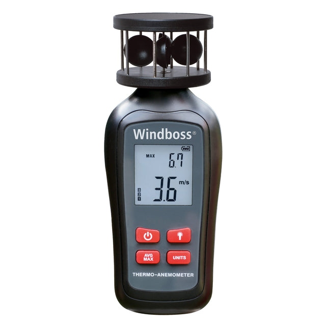 Dieser Windmesser Windboss ist mit vier sich horizontal drehenden Windradschalen ausgestattet. Die Geschwindigkeit des Windes kann so genau und schnell erfasst werden und wird nicht durch die Windrichtung beeinflusst. Zusätzlich ist ein Stativgewinde verbaut.