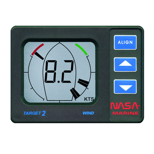 Dieser Windmesser Target 2 von NASA wird mit einem Display, einem NMEA0183 Geber und einem Verbindungskabel geliefert. Durch den NMEA0183 Ausgang und die schnelle Updaterate von 10Hz reagiert dieser Windmesser überaus schnell auf Änderungen des Windeinfalls. Hierbei zeigt das Target 2 Display die scheinbare Windrichtung und Geschwindigkeit an. Der Datenausgang im NMEA0183 Format kann mit jedem kompatiblen Anzeigegerät verbunden werden, das den ausgegebenen Datensatz „MWV“ wiedergeben kann.
